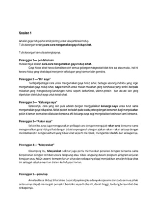 Meluahkan masalah yang dihadapi. Eratkan hubungan dengan teman dan ahli keluarga. Karangan pendek menjaga kebersihan persekitaran.