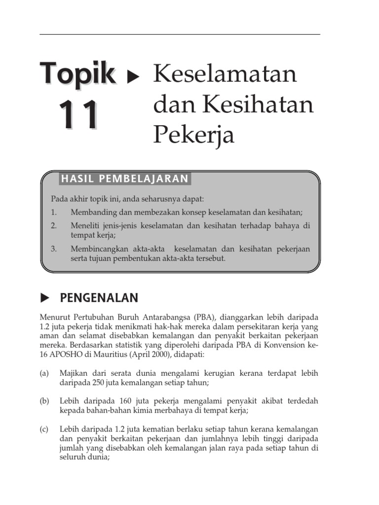 Topik 11 Keselamatan Dan Kesihatan Pekerjaan Pdf
